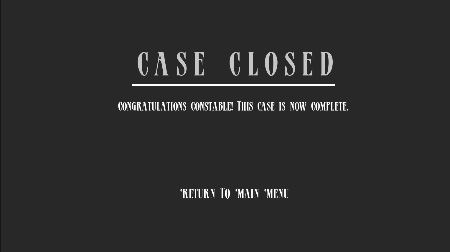 Overall the prototype allowed the exploration of a new discipline of game design and learned new ways of implementing Widgets within Unreal Engine and how to create menus. The prototype also features interactable elements such as the clue board and the notebook which can be fully navigated and used to complete the game.